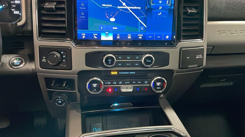 - Includes ambient lighting, power tilt/telescoping steering wheel with heat, memory and audio controls, remote start system, intelligent access with push button start, power heated/cooled driver and passenger seats with driver side memory, easy entry/exit memory drivers seat feature, power adjustable pedals with memory, tailgate step, remote tailgate release, LED center high mounted stop lamp, and PowerScope trailer tow mirrors with memory.